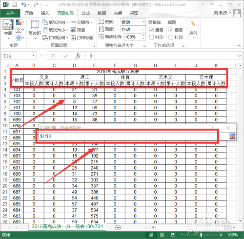 在工作表菜单下,选择“顶端题目行”