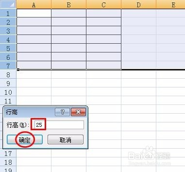 第三步:在弹出的行高对话框中,输入行高数值,单击“确定”按钮。