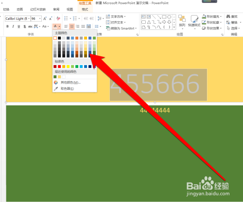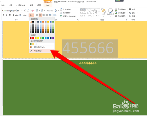移动到颜色区域后,点击鼠标适才选中文字的颜色就酿成适才取色区域的颜色了。