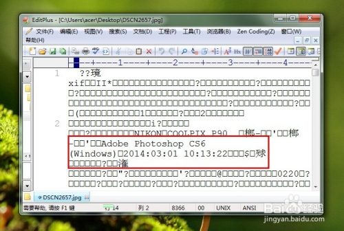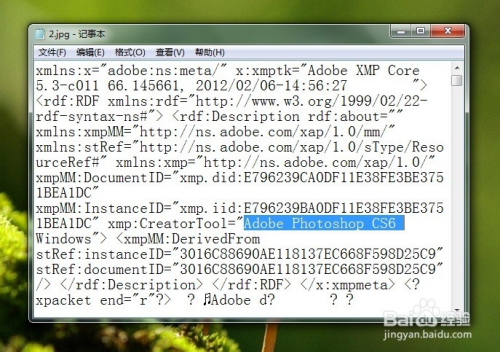用记事本打开用photoshop处置过的照片,打开体例如图。
