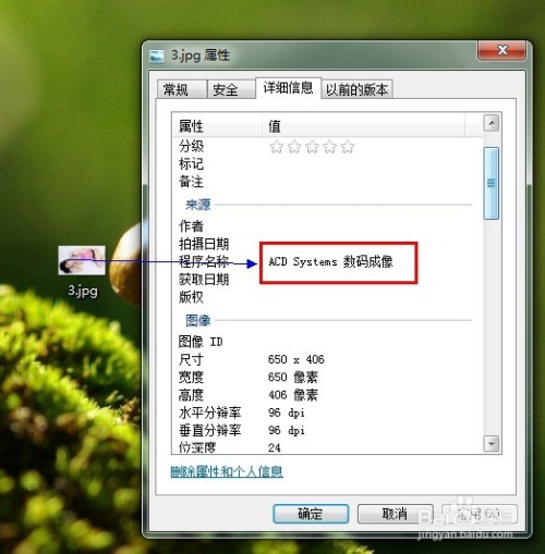 在我们打开的照片属性里面,选择“具体信息”,就可以看到“来历”,从这里可以看到“拍摄日期”、“法式名称”等。图一为PS第一张照片属性,图二为ACDsystems照片第一张属性。他们的图片来历里面的法式名称别离为“Adobe Photoshop CS6”和“ACD Systems 数码当作像”。
