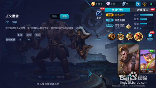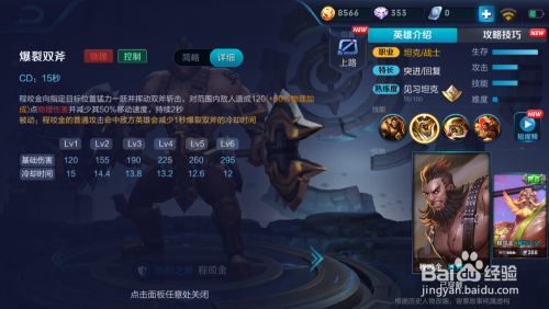 程咬金属于肉盾,回血优异;带斩杀或加血(2技术利用过程按不出来);作为肉,没有节制技术,团战中尽量侵扰敌方弓手以及法师的正常节拍