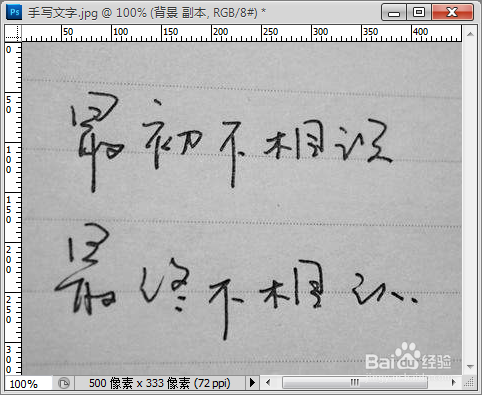 在PS中打开一张手写文字图片,复制获得副本层,将布景层埋没备用。