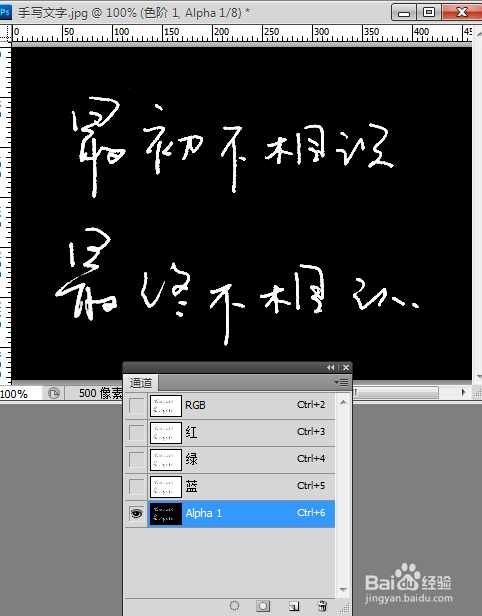 切换到通道面板,新建一个Alpha 1通道,按Ctrl+V粘贴副本层内容,再Ctrl+I反相,反相之后,看看文字之外的处所,有没有白色小点,如有,用黑色画笔涂黑。