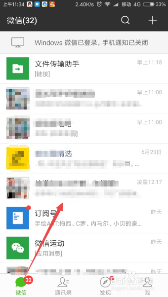 然后点击 微信 来登岸它,登岸当作功后来到微信页面。