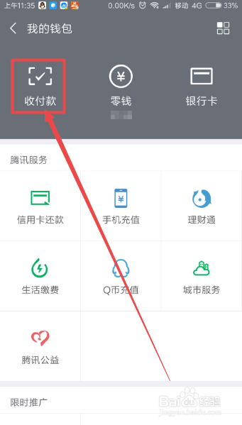 在打开的 我的钱包 页面中点击左侧的 收付条目 选项。