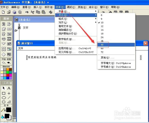 在Authorware中输入好文字后,如何点窜它的字体和大小呢?