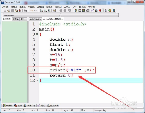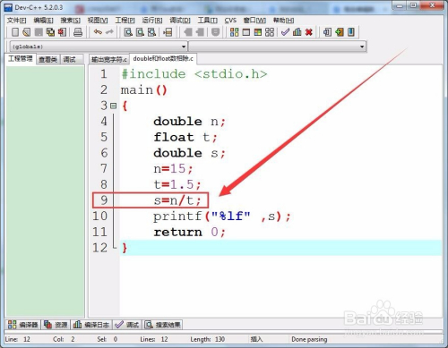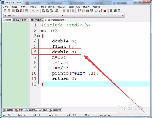 因为double数和float数相除,成果是double数。所以界说一个双精度类型的数s,作为相除的商。