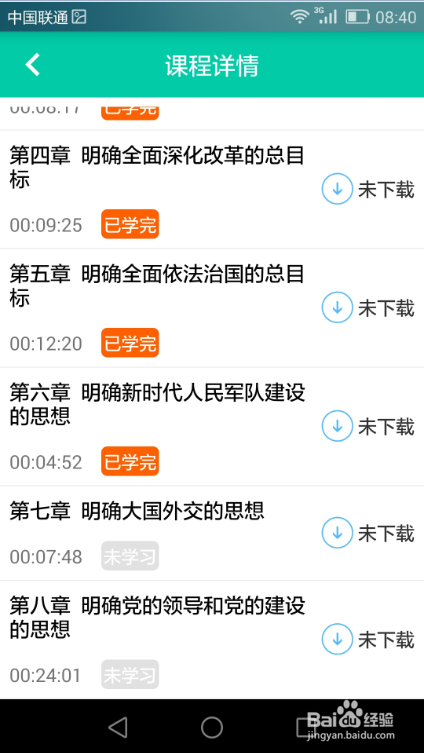 就可以依次点击此中一些章节进行进修了,进修完毕有已学完,没有进修的章节有未进修的提醒,进修起来很是便利。