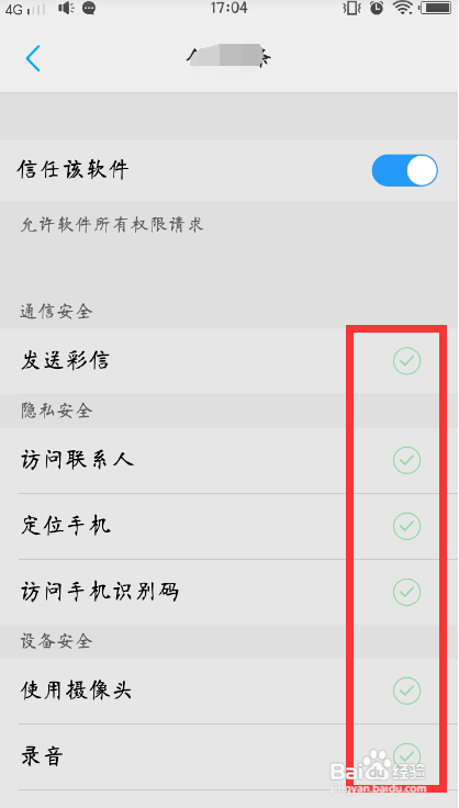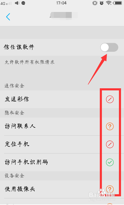 因为【信赖该软件】的按钮没有打开,所以这个软件良多处所都受到限制,利用不了摄像头,无法拜候联系人之类,这是为了庇护我们的隐私,若是认为这个软件没问题,可以利用就直接打开信赖软件按钮。