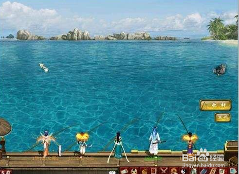 然后到垂钓老翁四周的海域,右键利用鱼竿-抛杆垂钓