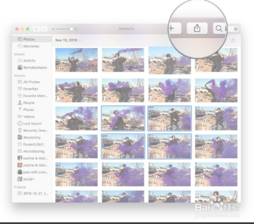 2、选择您要分享的图片和视频。按住号令键选择倍数。