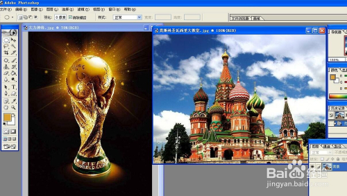 筹办好一张鼎力神杯的图片,和一张莫斯科圣瓦西里年夜教堂的图片。
