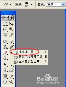 选择东西栏中的“橡皮擦东西”,并设置好合适的画笔大小。如图所示: