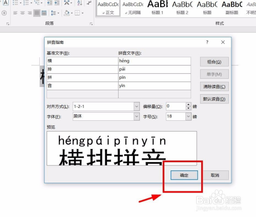 在弹出的新页面中直接点击【确定】,此时能得出文字的拼音,如图3-4