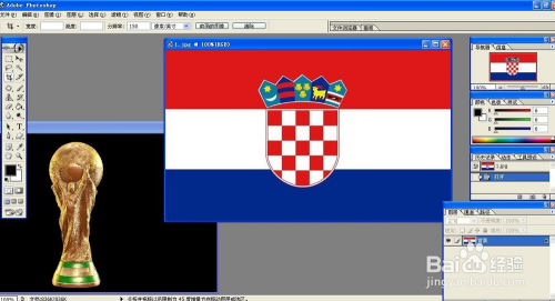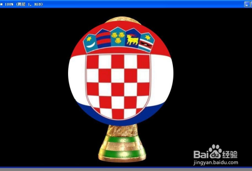 在Photoshop中,操纵图层的叠加模式,将克罗地亚的国旗印到鼎力神杯上。