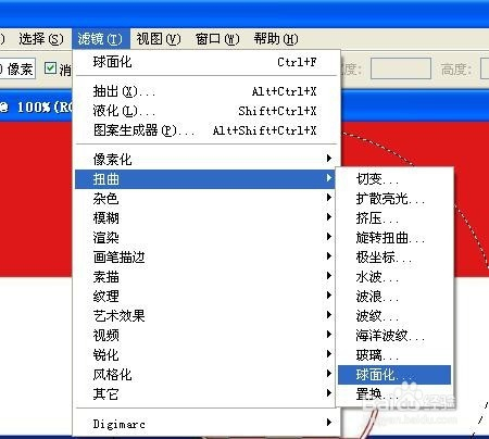 点击“滤镜”菜单——》“扭曲”——》“球面化”,使图片呈现凸出的结果。若是结果不较着,可以再来一次“球面化”。完当作后,结果如图所示: