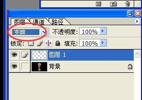 在图层窗口中,选中国旗图片地点的图层一,并将该图层的模式由“正常”改为“变暗”。如图所示: