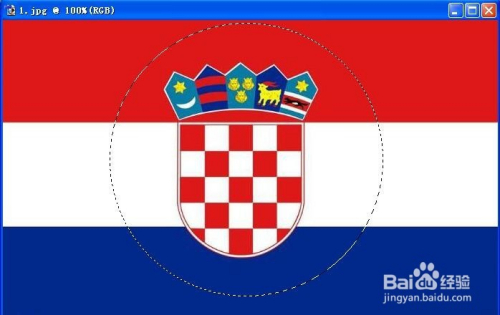 点击东西栏中的“椭圆”选框东西。然后,拖动鼠标左键,选出一个圆形或卵形的选区。如图所示: