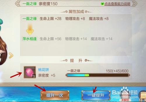 每次晋升都可以增添晋升仙缘的值和亲密度,会提醒我们,可是不克不及跨越上限,如图所示。