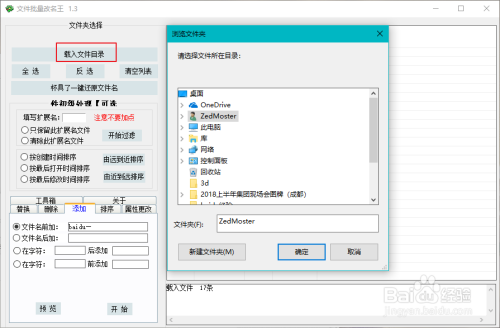 点击"载入文件目次"找到需要批量点窜名称的文件夹;