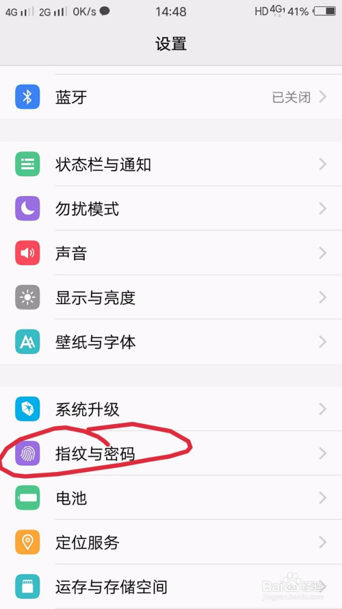 首先我们找到vivo手机的设置键,然后在设置中下拉菜单,找到‘指纹与密码’。