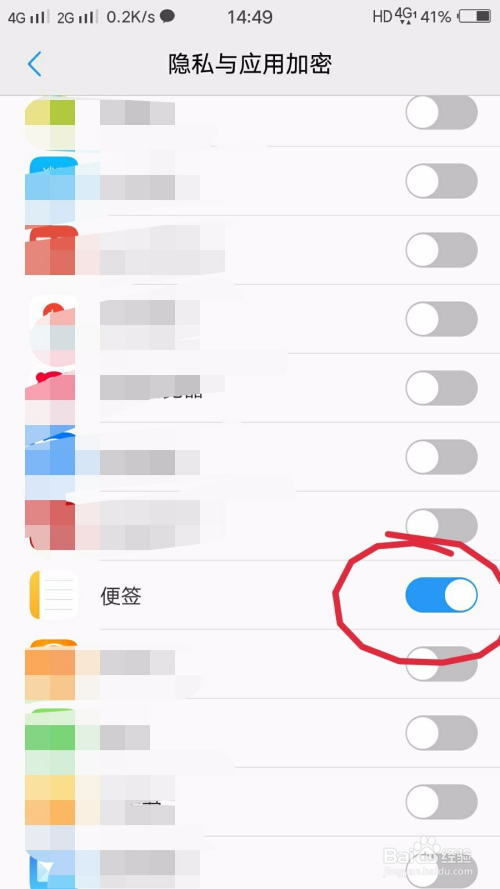 然后我们看到这里面有手机里面的所以app软件,我们可以按照本身想要加密的app进行选择。好比我们选择一个便签。