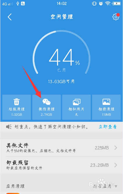 vivo手机体检后在哪里清理垃圾?微信里面占用的空间长短常年夜的,只是靠微信里的清理空间远远不敷,那只是清理了微信的,可是在手机里占用空间的图片、视频还有良多,需要进行深度的清理。