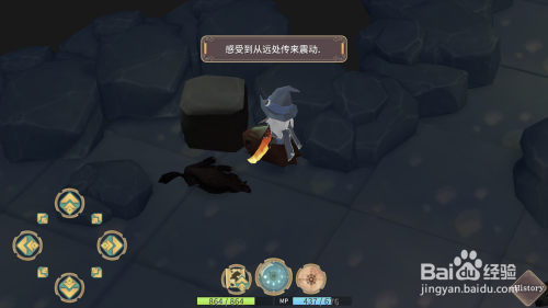 左侧有一个颜色纷歧样的石头,动弹偏向键将石头撞到地上阿谁机关处,机关到位后会提醒感受到震动。