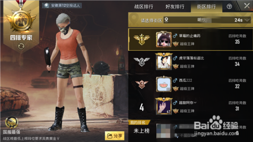 除了可以查看战区排行榜外,这里还能查看街区排行榜,点击上方的【街区排行】,进入界面后点击定位按钮,系统会显示我们四周的街道,选择好街道就可以看到街道排行榜了。