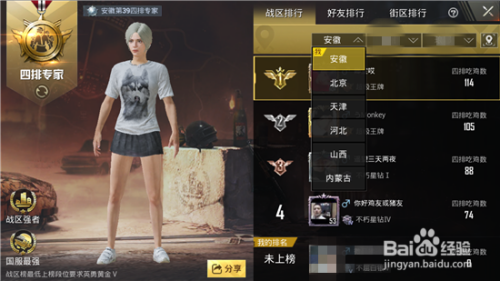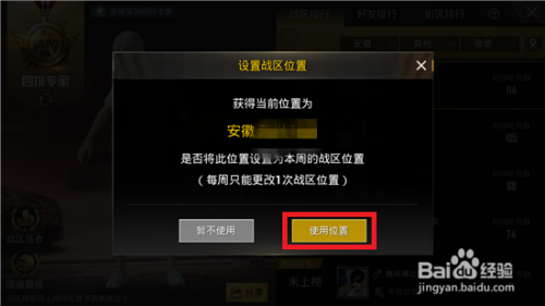 进入绝地战区界面后,会在界面中显示当前我们地点地域的排行榜,若是想要对本身的位置从头定位点击如图标识表记标帜的【定位】按钮。