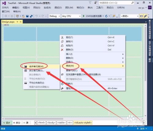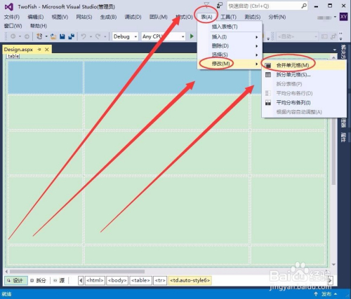 利用Visual Studio建造网页时,插入的表格往往需要点窜,这时就要用到归并和拆分单位格,如何实现呢?小编与大师分享一下本身的操作经验。