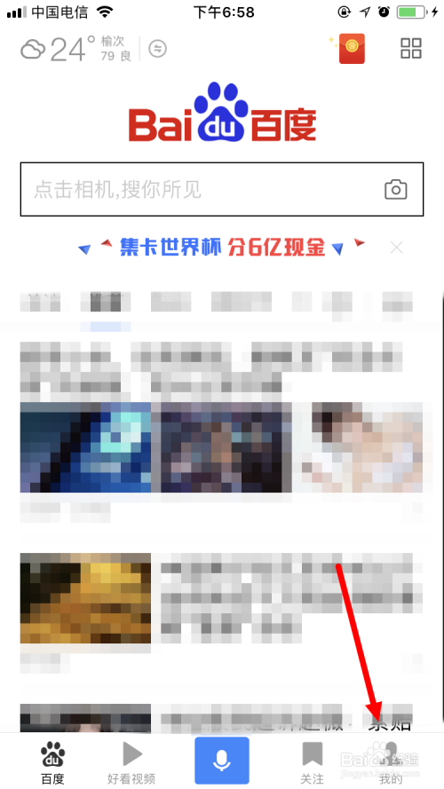 首先要在手机上打开并登录百度App,并在首页面点击右下角的 我的 。
