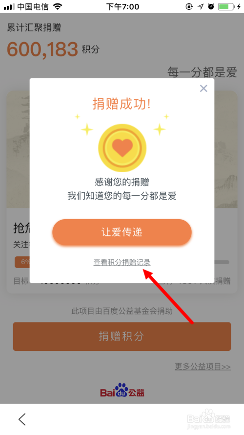如许就可以看到 我们的积分捐赠记实 了。