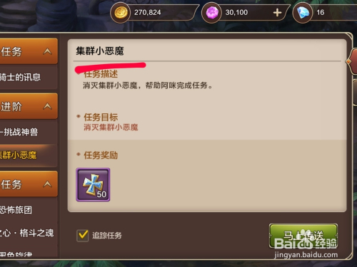 点击使命右下角的顿时传送就可以找到集群小恶魔了。
