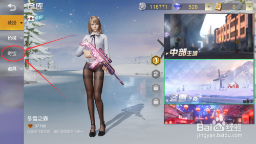 然后,我们在荒原步履仓库首页面找到“奇宝 ”按钮,点击打开荒原步履的奇宝仓库页面 。