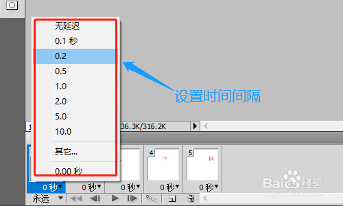 按照同样的方式,选中第三帧的时辰,将右侧图层的"爱"和"布景"图层可见,其余图层去失落小眼睛...依次方式类推,将四帧和对应的四个图层做一一对应的设置;接下来就是给每帧之间设置时候距离了...