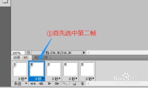 然后在上方的东西栏依次点击"窗口"-"动画",我们将动画功能打开,然后软件的左下方会显示一帧;
