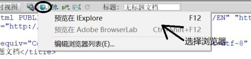 做好之后找到屏幕上方的浏览器标识,可以选择浏览器运行所做的网页,或者可以F12快捷键直接利用默认浏览器打开。