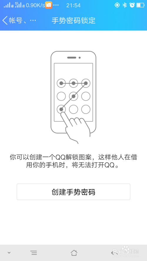 点击手势密码锁定,进入到手势密码锁定的建立界面,如图