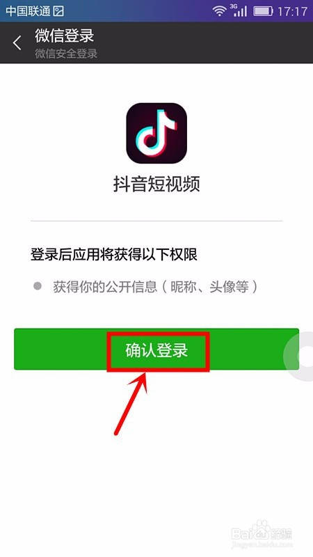 这时,抖音会主动搜刮识别正在登录利用的微信账号,我们点击确认登录即可。