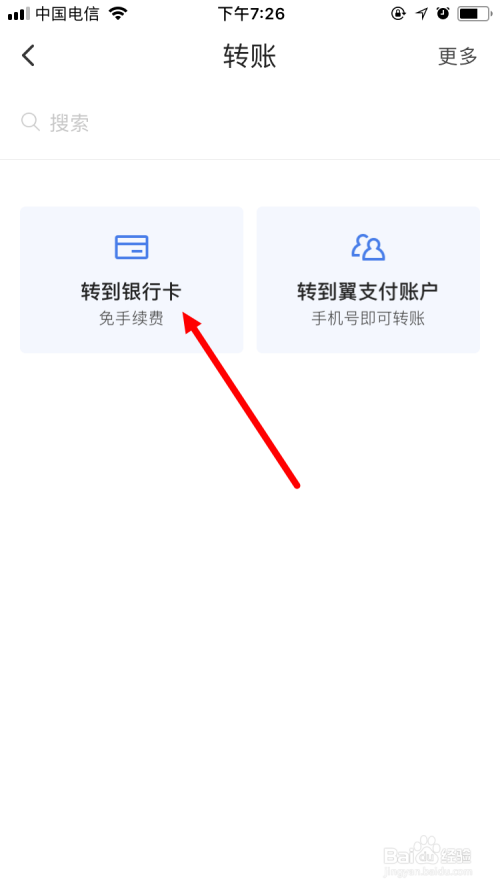 下面跟大师分享的是如何经由过程翼付出转账至银行卡,可以将本身银行卡或翼付出余额里的钱转账到本身的其他银行卡或别人的银行卡里。