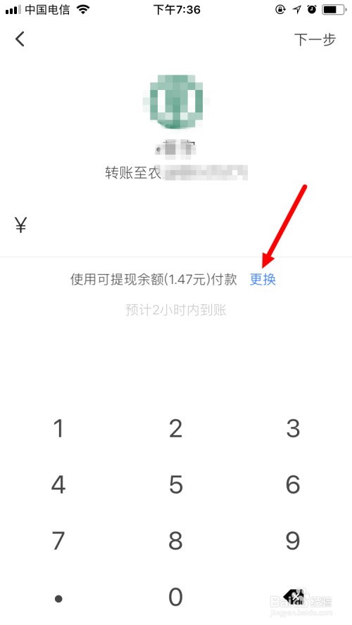 输入转账金额,点击 下一步 。