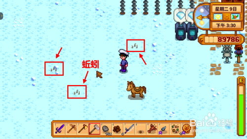 蚯蚓是星露谷物语的神秘生物,冬季最常见(其他季候雨天多见)。蚯蚓外形是会蠕动的三根线,用锄头挖掘可刷出好工具。