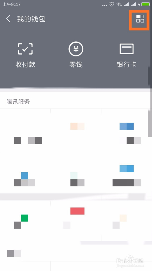 点击【钱包】进入,选择右上角的【四个方格】图标进入,可以看到【亲属卡】