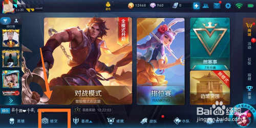 在本家儿页面的最下栏处,点击【铭文】,如图所示: