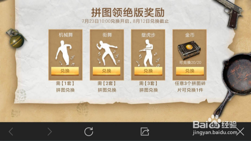 比来绝地求生刺激战场又出来一个活动,加入集拼图,可以获得永远跳舞动作哦,是不是很冲动呢,机械舞、街舞、壁虎步这些步数都可以在老友面前独领风流呢,下面让我们看看怎么介入吧。