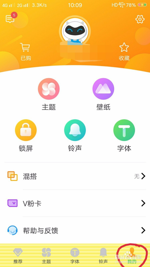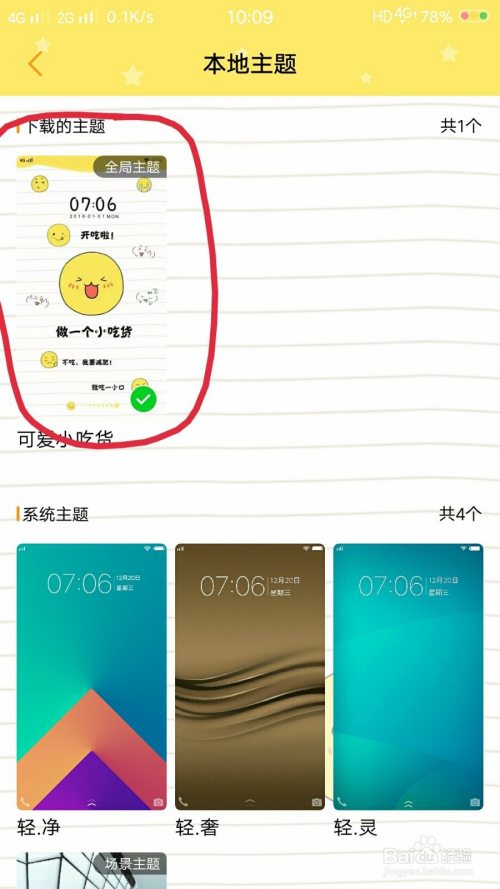 别的你还可以到,本家儿题右下角的‘我的’中,找到下载好的本家儿题,别的系统默认的本家儿题也都在这里,你可以随时进行改换。