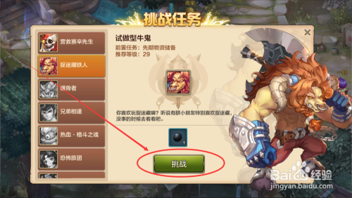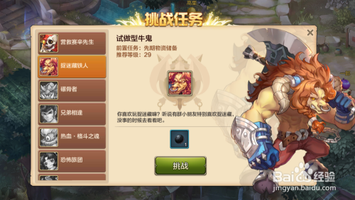 接着,我们在挑战使命接取页面找到“捉迷藏铁人 ”这个挑战使命,我们点击“挑战 ”按钮起头进行使命 。