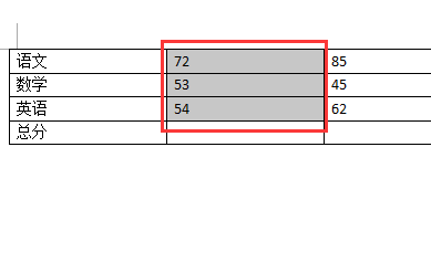 选中我们需要进行乞降的数据。好比我们求甲同窗语数英的总分,我就选中她的三门成就。